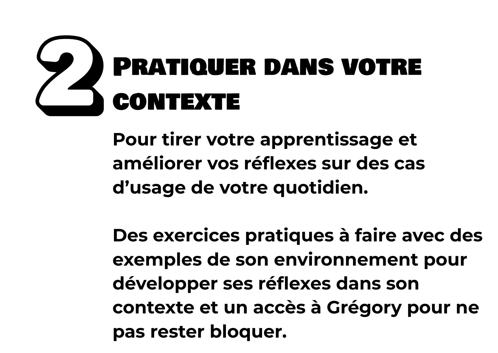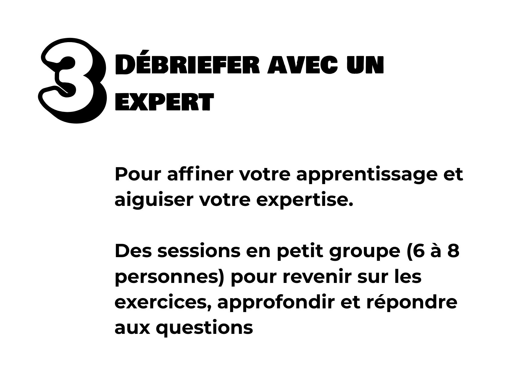 Le programme n’est pas une formation classique que l’on oublie après seulement quelques jours. Nous avons inventé une approche centrée sur votre pratique concrète, dans votre quotidien.